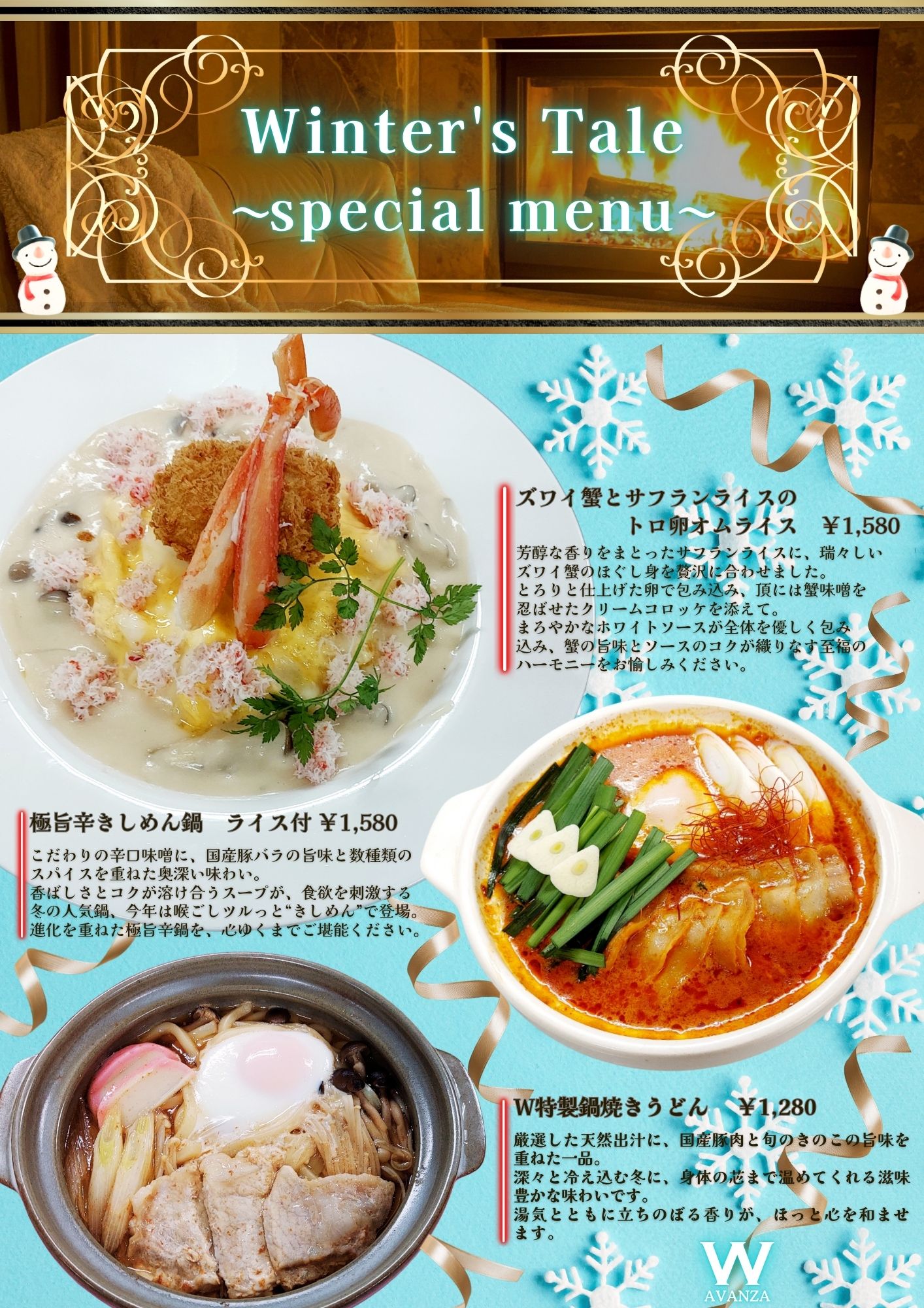 冷えた身体を芯から温めてくれる冬メニューを是非ご賞味ください!