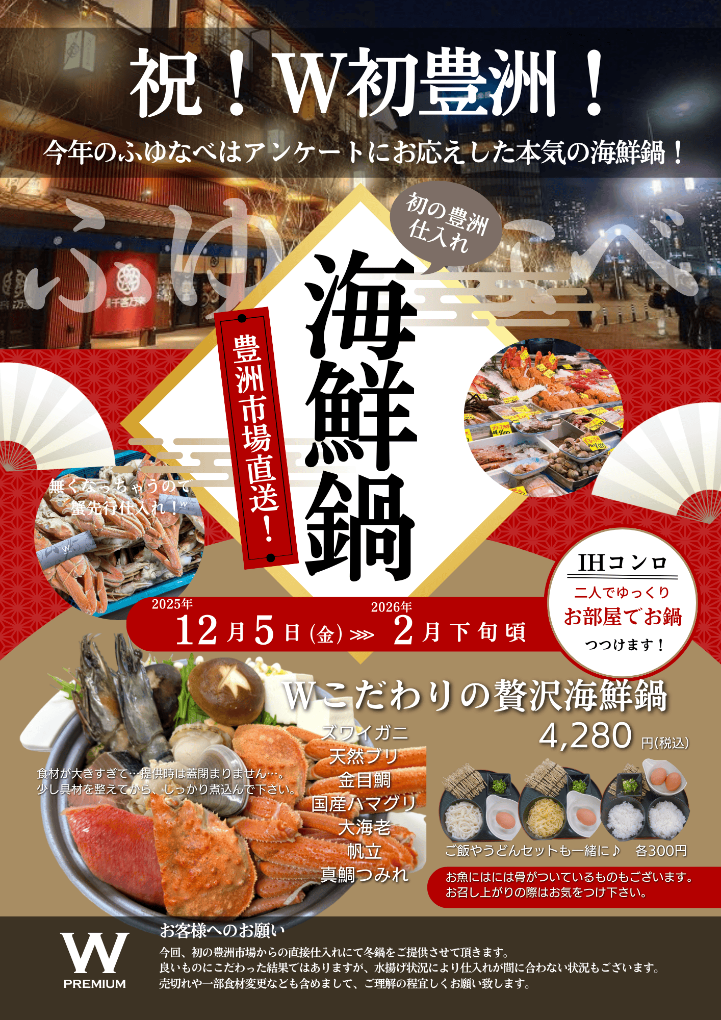 今年のふゆなべはアンケートで要望のあった海鮮鍋に決定!