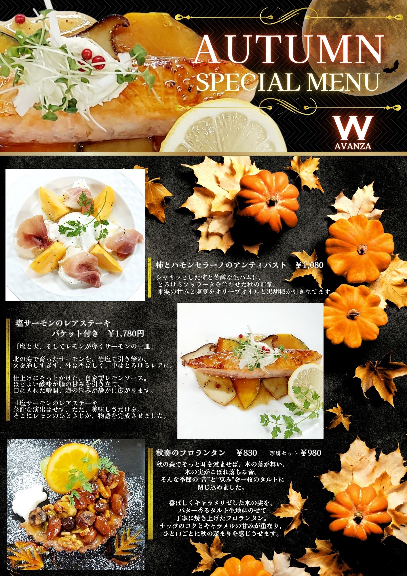 旬のサーモンや柿、キノコ、ナッツやカボチャを