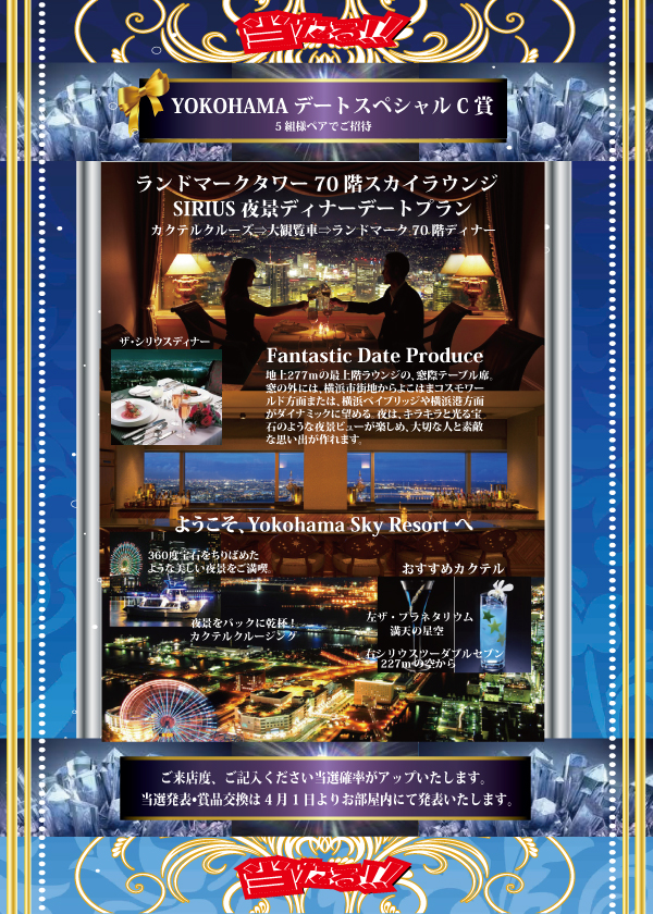 ※抽選結果は4月1日より各部屋のテーブルにてお知らせいたします。