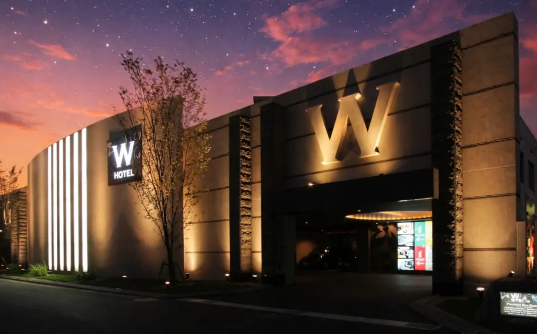 2階建ての巨大なホテル。