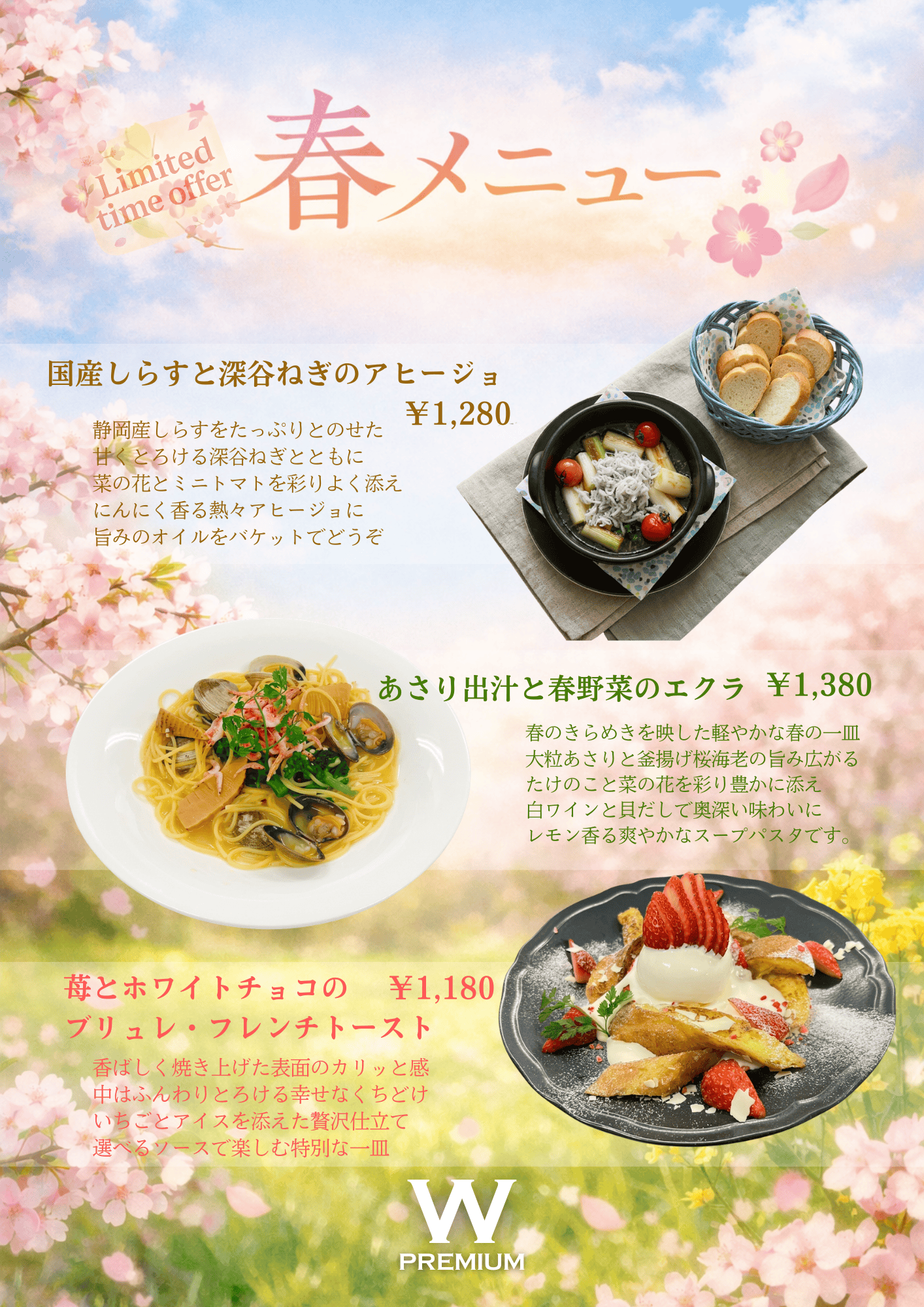 春の風を感じられるW-PREMIUMならではの一品になっております。